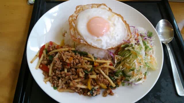 うらじろ / お食事パットガッパオ 2015年5月6日2025年9月23日 - Leave a Comment 950円@うらじろ(^.^)。 「挽き肉のバジルスパイス炒め目玉焼のせ」 じわじわ来る辛さでナイス(^^)d。 きょうはお風呂を先にしたんだけどな(^o^;)。