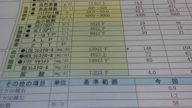 75への道LDLコレ 2015年7月31日2025年9月23日 - Leave a Comment 健康診断の結果キタ(-.-)。 悪玉コレがちょい多い(^_^;)。 話題の善玉比も2.0を越えている(~_~;)。 調べたら、1.5超で要注意(ToT)。 次にどこかでの血液検査結果を見るまでは、揚げ物とレバーと食べ過ぎに気を付けようと思う( ´△`)。