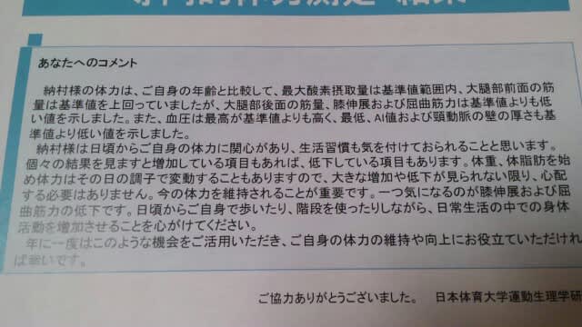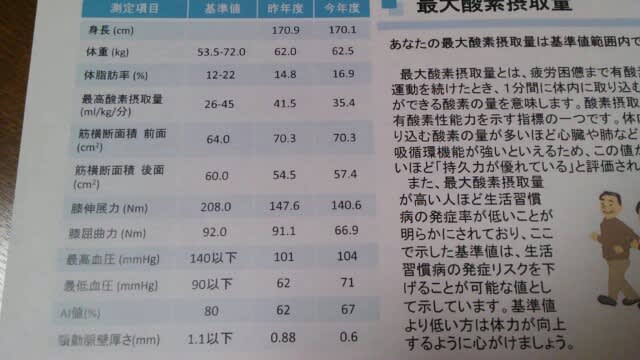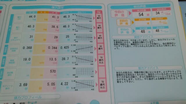 筋力60歳台、柔軟性と動的バランスは70歳台以上(T-T)。