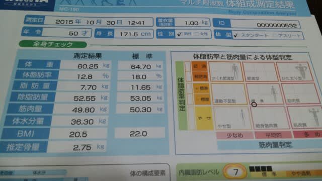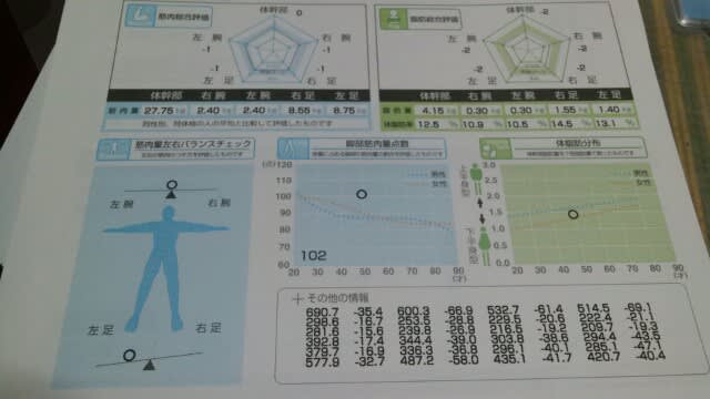 筋肉は少なめ寄りの平均ゾーン。脂肪はちょい少なめ。