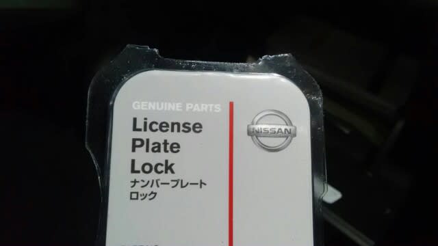 電話でオススメされたナンバープレートロック、3千円とそれほど高額でもなかったからお願いしたけど、ネジ頭が異形なぐらいかと思ってたら鍵と同じく一台ごとに違うらしい。
