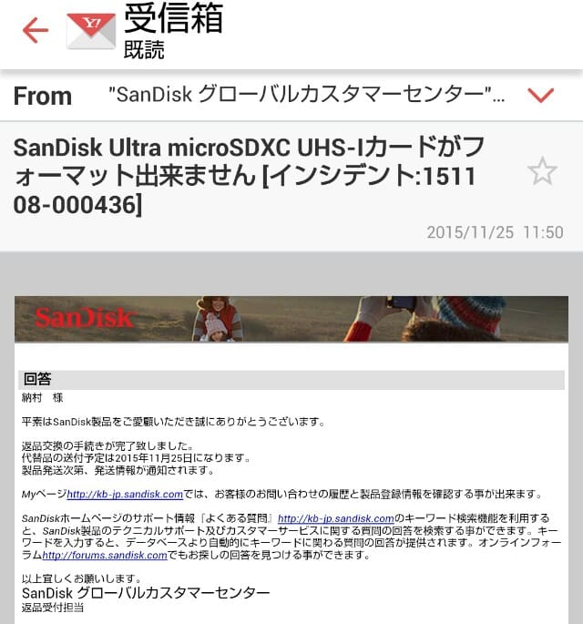 こちらはその後のアクションも週末だけになってたけど、先週末ようやく現物を送り、きょうはそのレスが入ってきた。