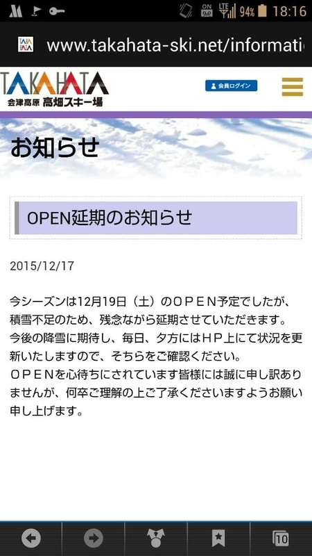 以前も雪不足だったとき、粗踏みがどーのこーのと言ってたから、ある程度充分な降雪あってからさらに3日ぐらいはかかるのだろな(*´-`)。