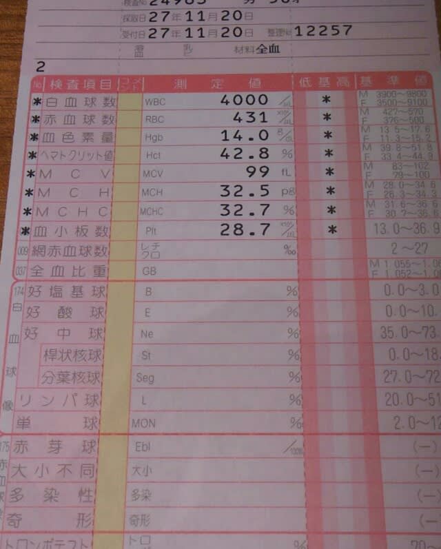 今回から処方箋の形式が変わり、血液検査の結果が印刷されるようになってた。
