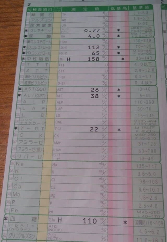 中性脂肪と血糖値がちょっと高いけど、食後1時間なら気にすることないって(^^;。