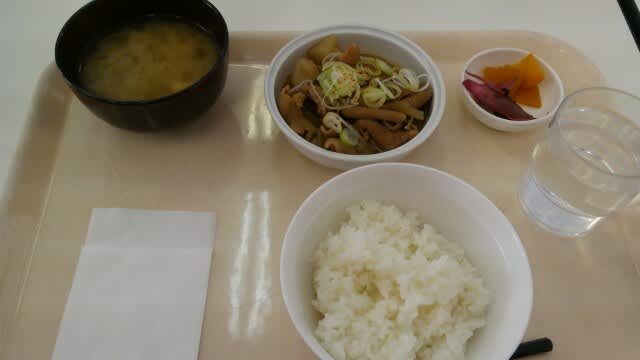 ちなみに、きょうのお昼はチキン照り焼きを頼んだら売り切れになっちゃったので、もつ野菜煮定食。