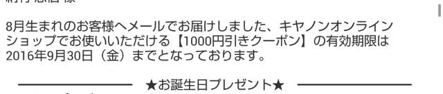 プリンタの販売元から1000円引きクーポンが送られてきた。