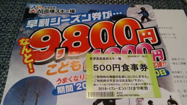 ■会津高原高畑スキー場・2016-2017シーズン券申込み完了 ( スキー ) – hirokamaの屋根裏部屋 – Yahoo!ブログ