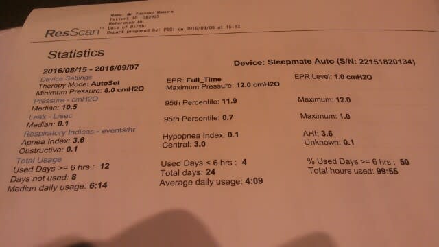 でも、データをよく見たら空気漏れが増えてるらしく、新しいあごバンドをいただいた。