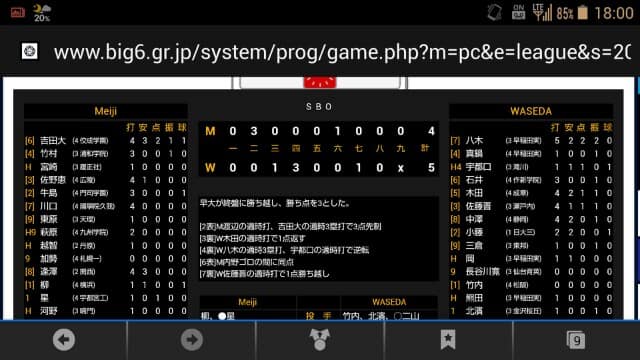 第一試合はそのまま慶應が勝ったから、第二試合で明治が早稲田に勝てば負け無しの8連勝、勝ち点4で2位の立教との直接対決を残して優勝が決まるというびっくりな状況。
