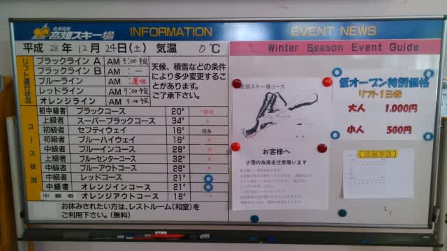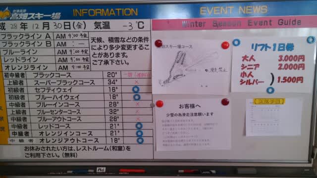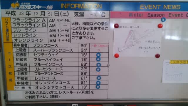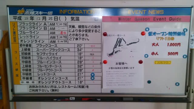滑走コースはレッドとオレンジイン。リフトは9時~15時。