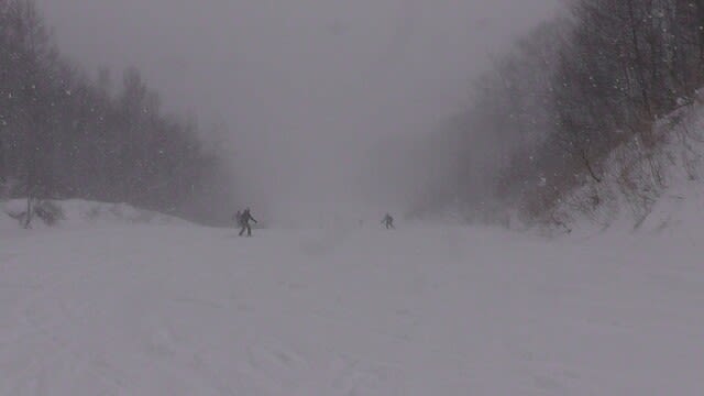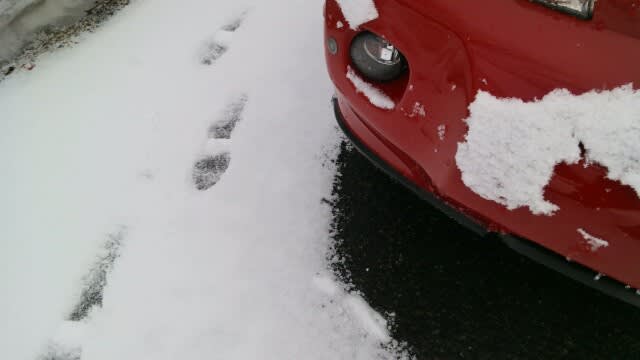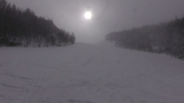 雪請いをがんばり過ぎて寝坊したけど、おかげで県境に近付いたあたりから雪が強くなってきた(^^)。