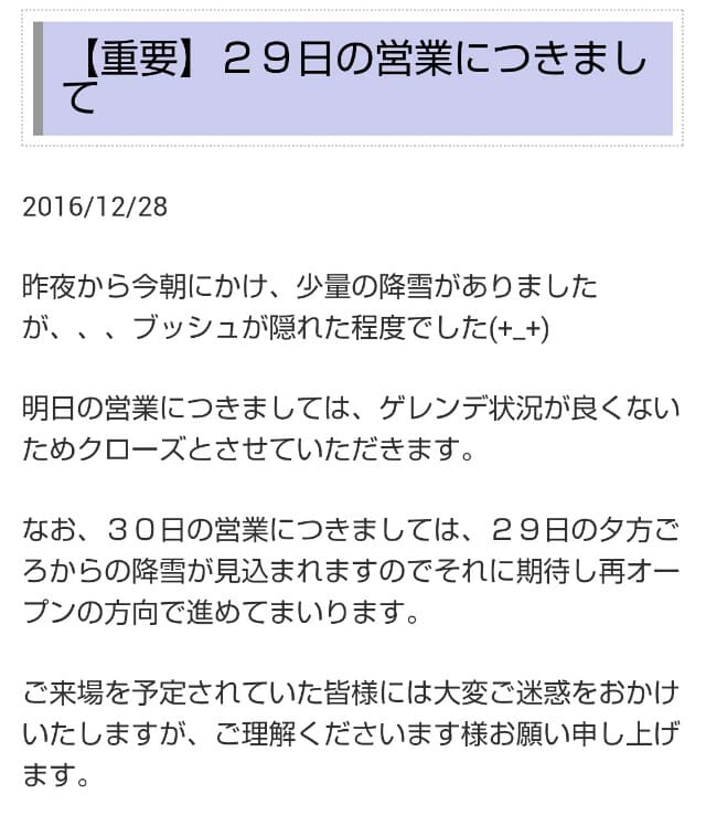 オープン日に仮オープン出来ただけ昨シーズンよりマシかな?