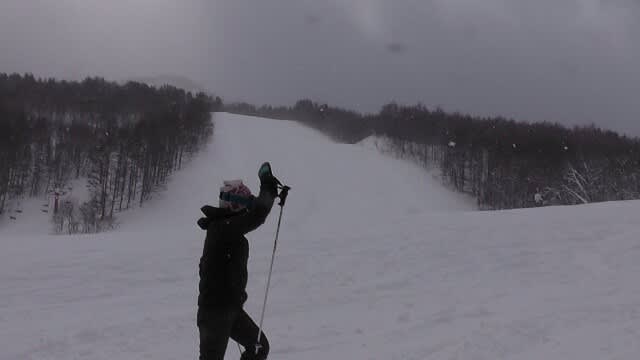 荒れてなさそうな右側のコースを狙い、左手ブロックに気を付けて滑った。