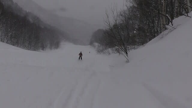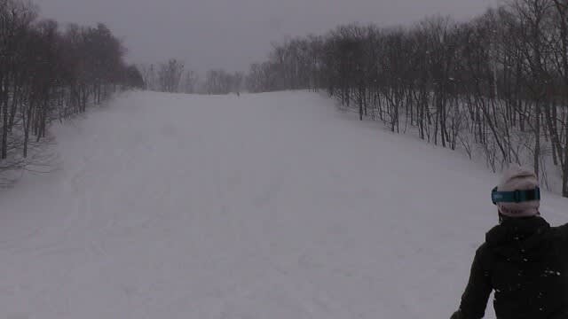 下が固くて浅いライン、後半は抑え切れずにスピード出ちゃって片足エッジングになったり(–;)。