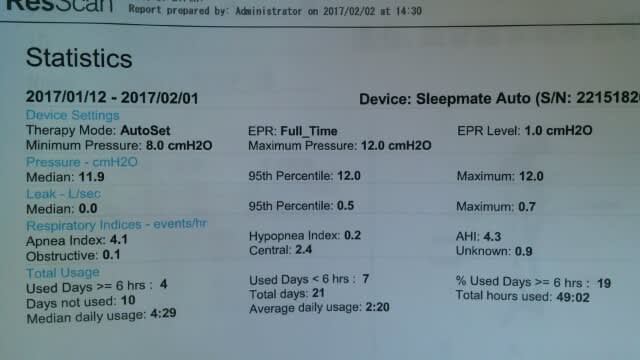 かんじんのAHI値は4.3。