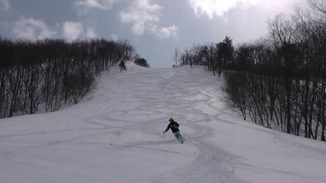 急斜面はなかなかきれいには踏んでくれなかったけど、下部のコブラインではなかなか遊ばせてもらったね。