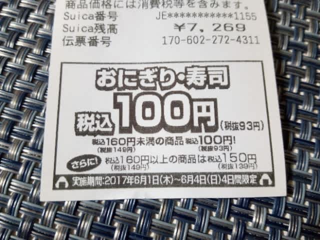 お食事100円 2017年6月2日2025年9月22日 - Leave a Comment セブンのおにぎり(*^^*)。 晩ごはんにいただいた(^ム^)。 税込みなのが素晴らしい(^^)d。 明日の朝も使わせていただく(^o^;。