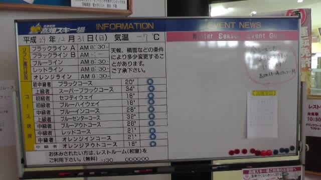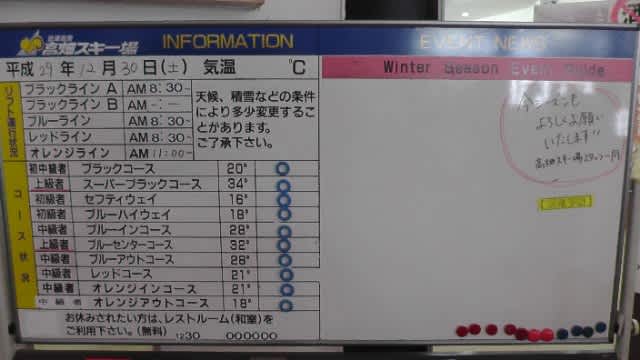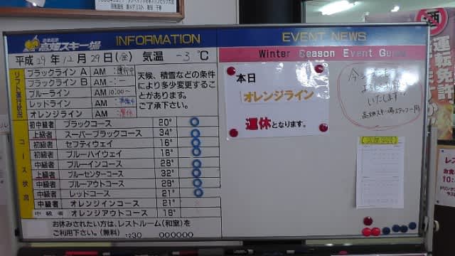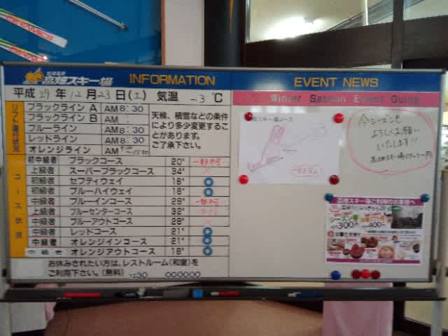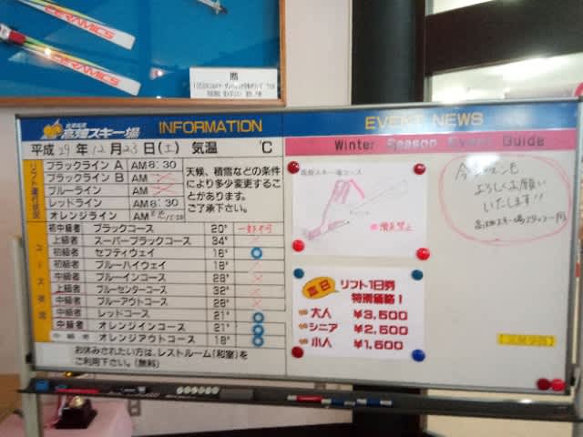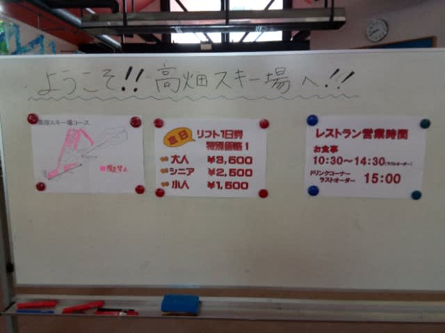 高畑初日 2017年12月23日2025年9月22日 - Leave a Comment 来たぞ、高畑。 橋の上。 ようこそ。 掲示板。 おはよーレッド。 新雪いただいた。 一番乗りではなかったけどね^^;。 オレンジイン。 オレンジアウト。 滑れないけどブルーイン急斜面。 ブルーアウト急斜面が遠目に見ても草ぼうぼうだものな〜。 (~_~;) チキン照り焼き定食。 午後はレッドも荒れてきたので、連続オレンジ。 そして、ラストオレンジ。 暖かかったので夕方の下の方の雪はベシャベシャだったけどレッドもオレンジもいい雪だったし、薄いのだろけど下が出てるようなところは無く、きょうは古い板にしたけど明日はフォルクル出そうと思う。 というか、滑り過ぎで筋肉痛が心配(^_^;)。 —– ■会津高原高畑スキー場オープン日@2017年12月23日