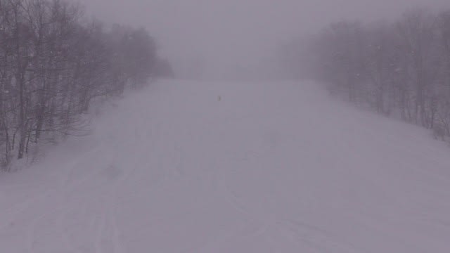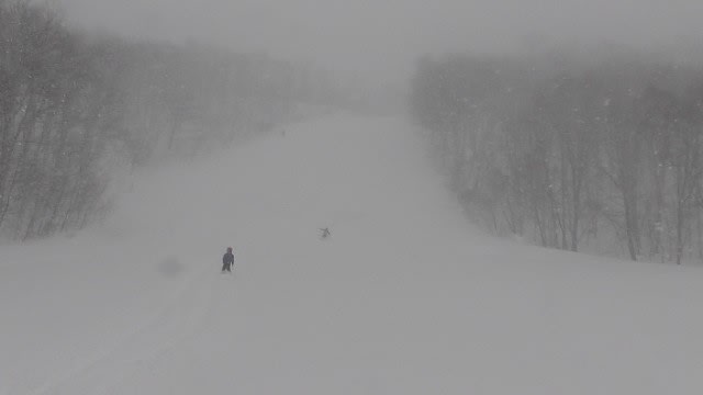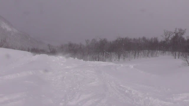 急斜面には吹き溜まってさえなかったけど、その下のコース脇にはけっこう溜まってた(^^♪。