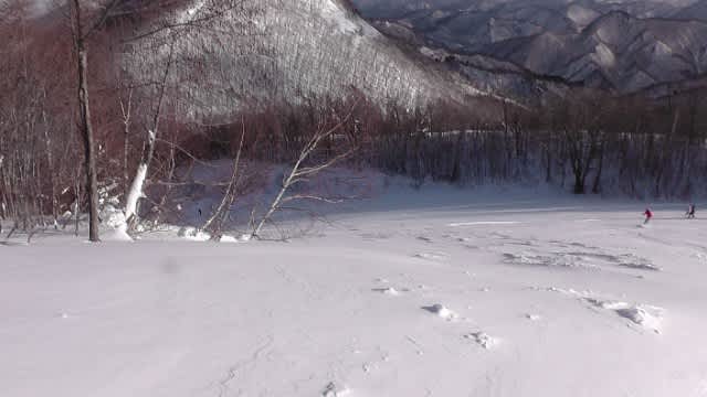 急斜面には吹き溜まってさえなかったけど、その下のコース脇にはけっこう溜まってた(^^♪。