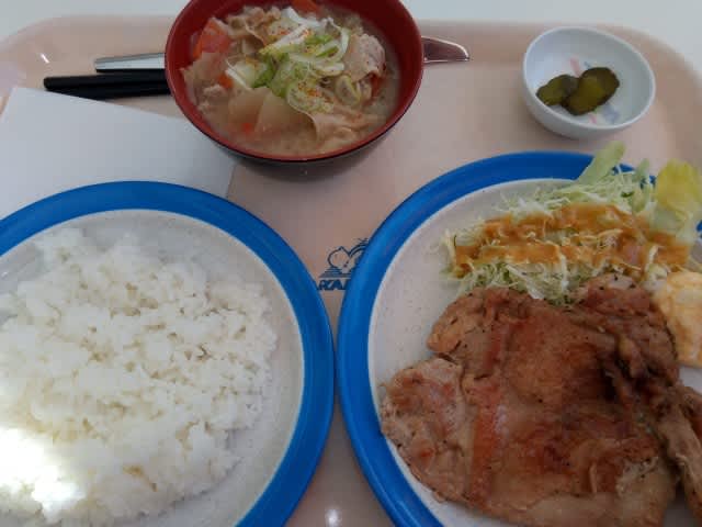 チキン照り焼き豚汁定食。