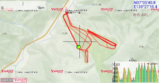 ■フリー、猪谷ゲレンデ 夏道よりも上にあった起伏に脚を取られそうになったけど、ダイジョブ。