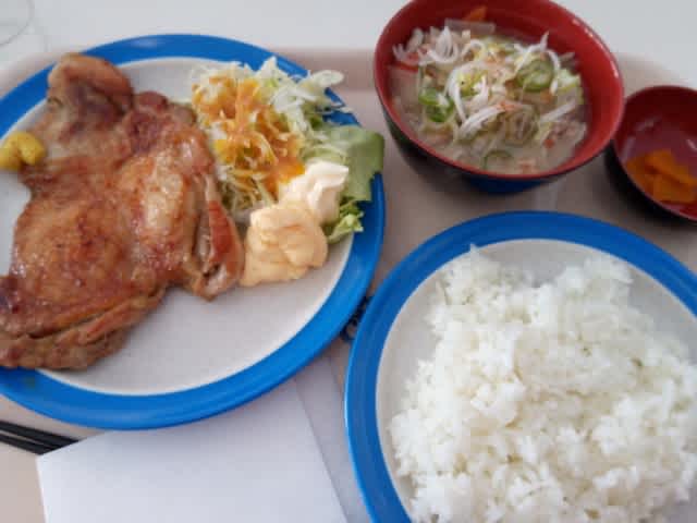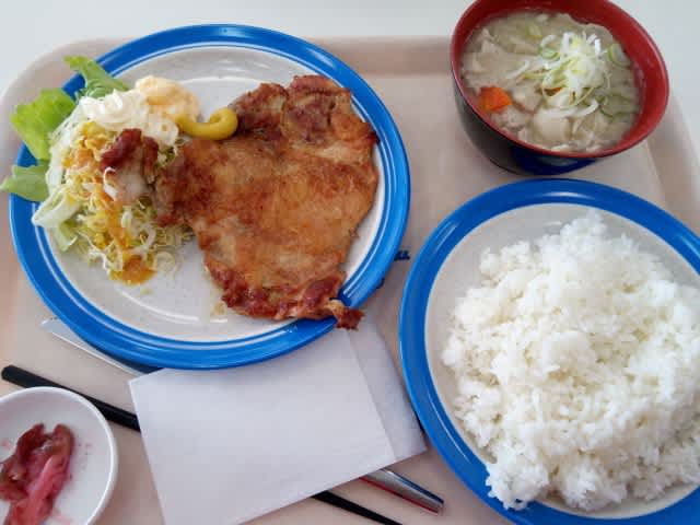 お昼は、安定のチキン照り焼き豚汁定食(^o^;)。