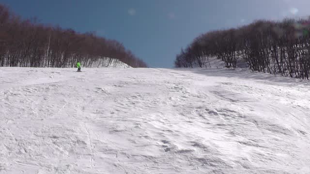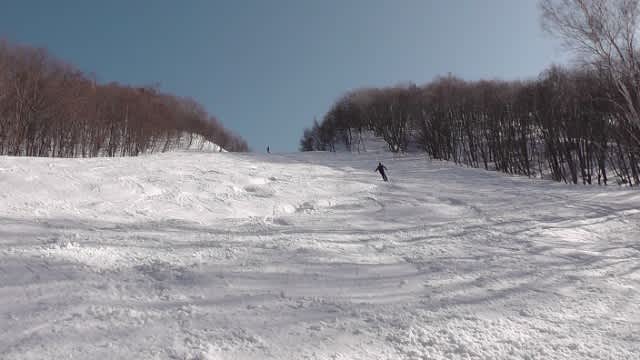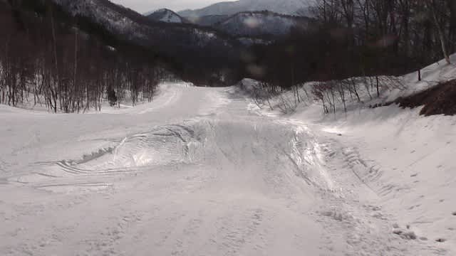 滑るつもりでいた2本目のラインで転倒者続いたので、お昼には浅過ぎに見えてた奥のラインを選択。