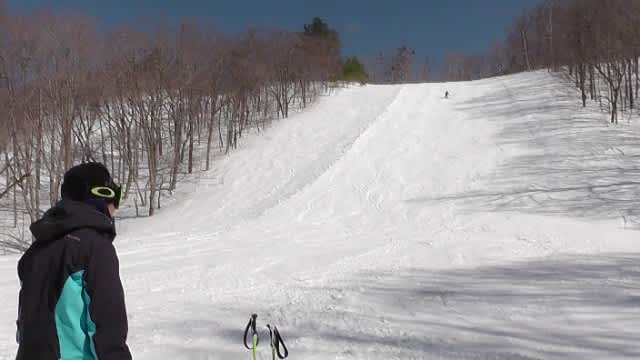 滑走コースは、不整地(コブ)でなければどこでも怒られないだろけど、レッドを2本、大回りと小回りして感触を探ることにする。