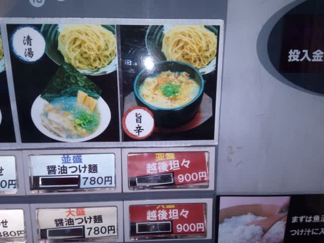お食事越後担々 2018年5月3日2025年9月22日 - 2 Comments. 雨の連休後半戦初日、17時40分でカウンターに空席あったから入ってみた@維新。 以前に職場の近くにあった支店で味噌ラーメンは食べてみたけど、初めて自慢のつけ麺に挑戦するp(^^)q。 旨辛というので担々にしたけど、旨いぐらいに辛いのではなく、旨いけど辛いよ、だったみたい(^_^;)。 辛かったけど、美味しいし面白い。 また来よう(*´∀`)。 チケット渡すときに、hirokamaさんに教わった通り麺は熱盛りを頼んだけど、お勧めという冷たいのも次は食べてみたいな(^ム^)。