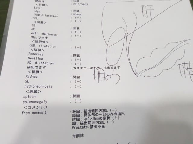 右脇腹に当てられたとき何か痛いところがあって、その周りを何度も何度も何度も調べてる。