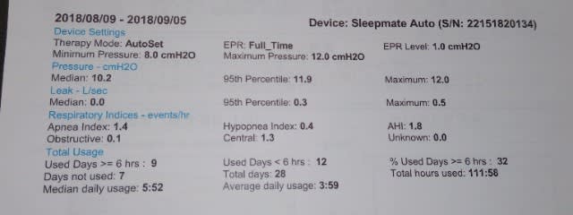 いい数値が続いているのと、7割ぐらいの日で使えているのと(さらに増やしたいけど)、1日あたり5時間越えている(でも6時間越えたい)ので、通院を2ヶ月に一度にしていいって(^o^)。
