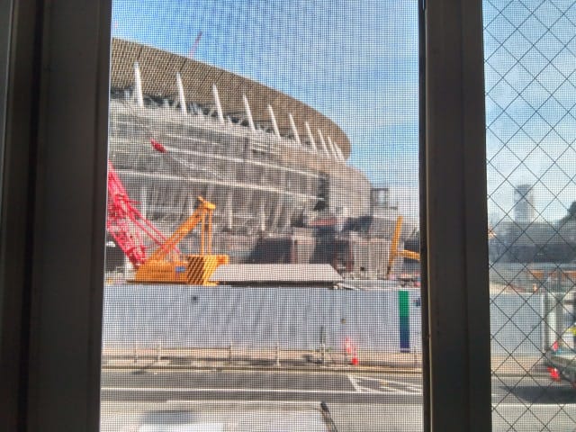 二階で新国立競技場を見ながらの