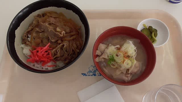 チキン照り焼き定食、豚汁。