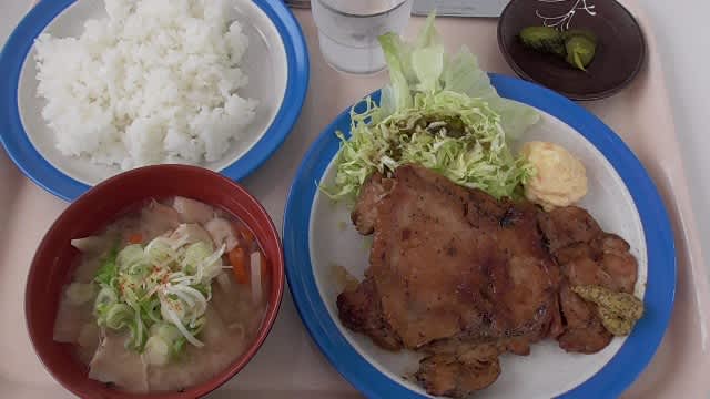 チキン照り焼き定食、豚汁。