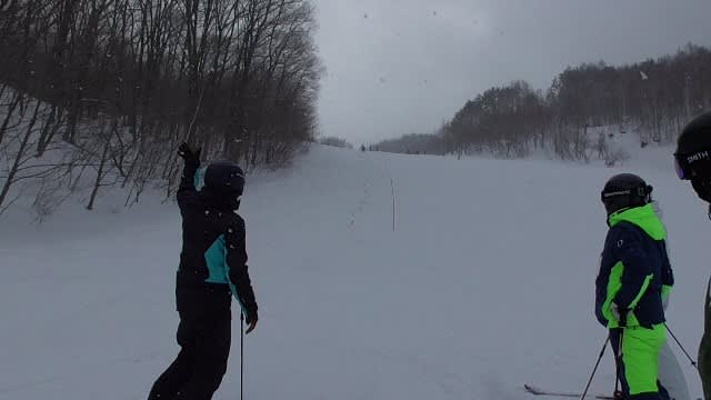 積雪不足なので来週のコースは、という話もしてくれた(^^ゞ。