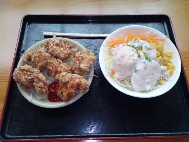 鶏から揚げ、野菜サラダ。