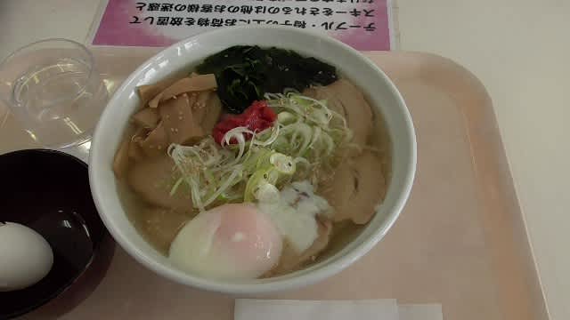 梅塩ネギチャーシューメン、温泉たまご。