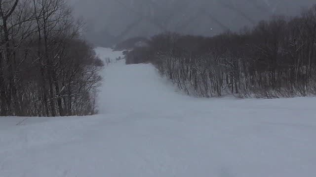 インコースリフト寄りの新雪、喰われていなかったので入ったら下はガリガリカチカチで、転んだ(;´Д`)。
