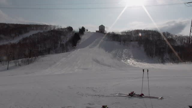 ラディウス小さいのと雪が朝から柔らかめなのとで、昨日のチャージャーよりは板が回ってくれてる感があるかな。