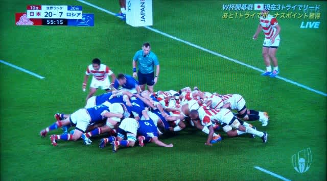 なんて思ってたらキックオフのボール処理失敗したうえにファーストトライ獲られちゃって(~_~;)。