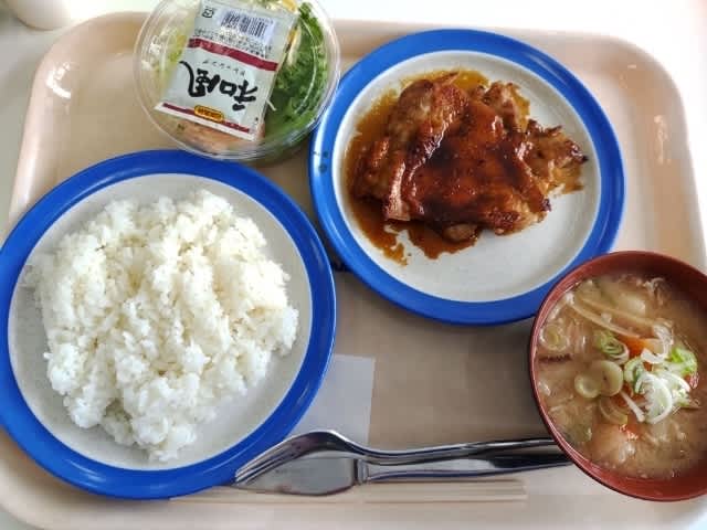 チキン照り焼き定食、豚汁チェンジ。