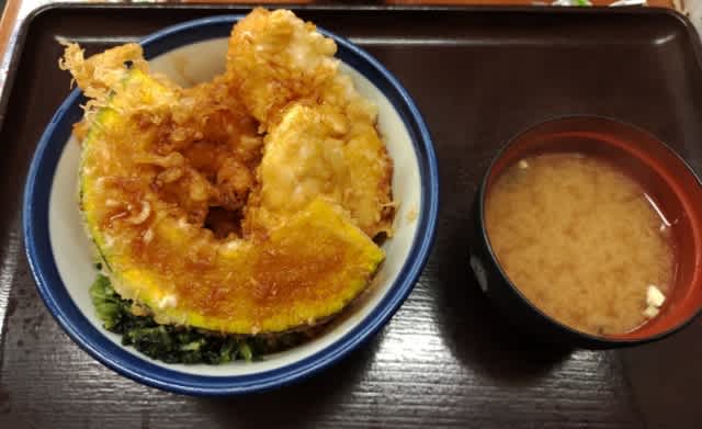 ごはん小盛り、たれ少なめ、かぼちゃ追加@天丼てんや。