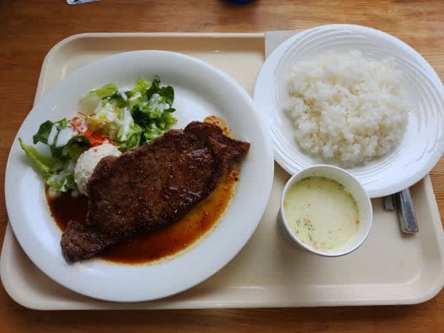 お食事牛ロースステーキプレート 2023年2月15日2025年9月22日 - Leave a Comment スープバー付き@レストランかぐら。 ちょっと贅沢。 でも、SNOWMANでドリアにドリンク&スープバーを付けるより安いんだよな。 やっぱりスープバーは3回おかわりした。