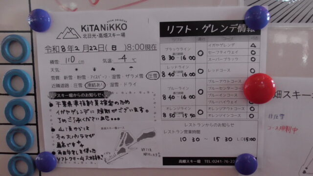 お食事 / スキー / 高畑連休中日 2026年2月22日 - Leave a Comment ようやく着いた😀。 おはよー。 😄 掲示板。 積雪は110センチ。 猪谷は規制中。 始発でもないのに行列が。 さすがは連休だ😲。 朝オレ、行っときました。 人数制限あると、ムツカシイかな? 早めのランチもちょい待たされるぐらいには混んでたよ。 午後はレッドした。 ブルーセンター。 急斜面も挑戦した。 ラストブルーはハイウエイ。 楽しみました😊。